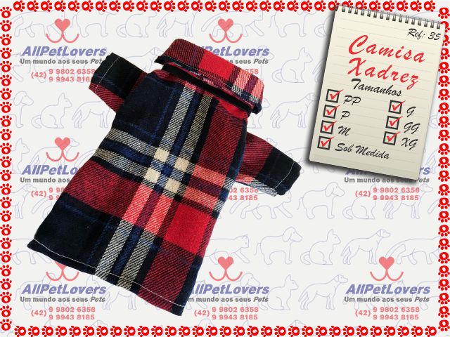 * Tamanhos: PP -P – M – G – GG – XG